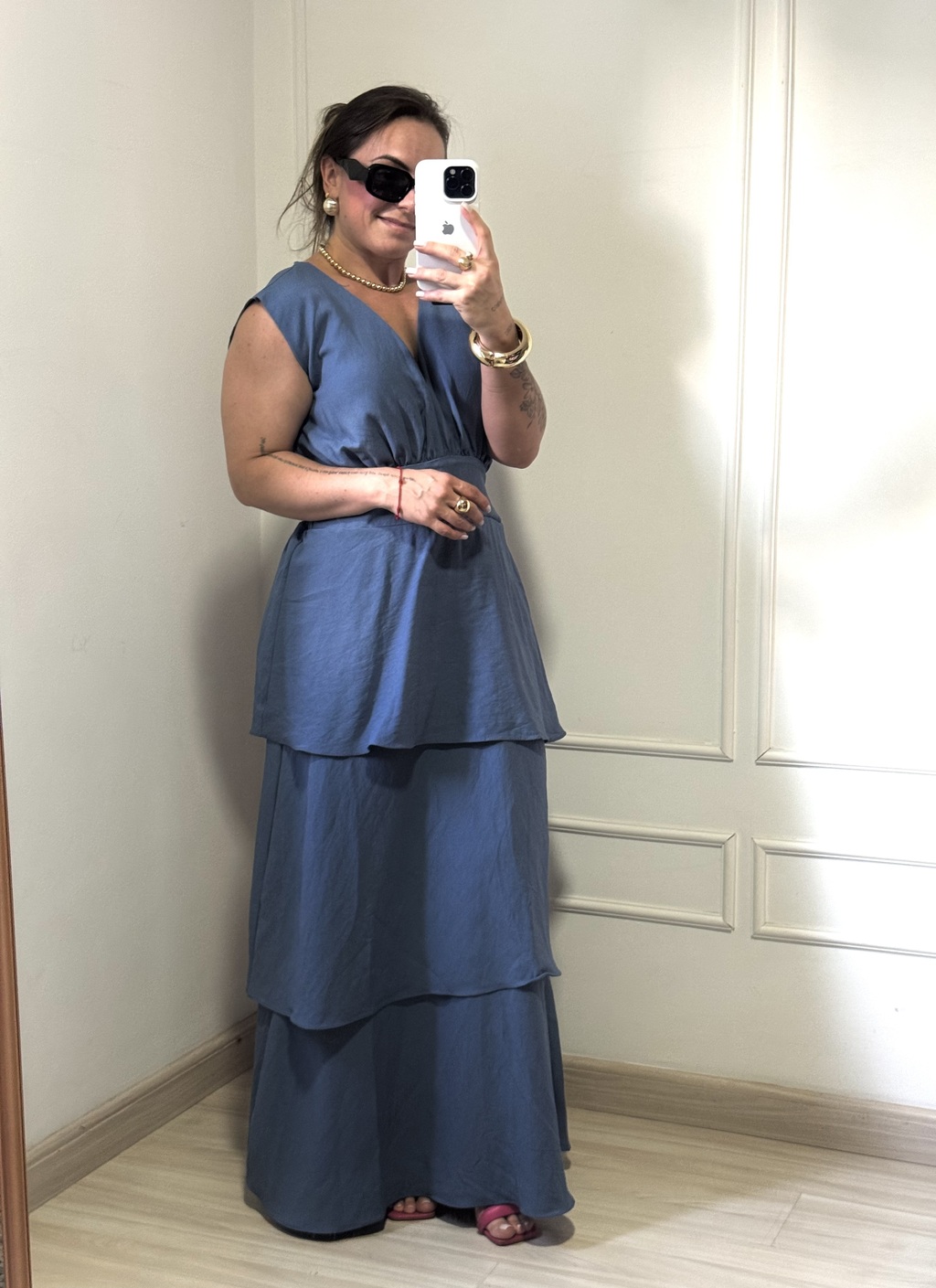 O design longo e fluído da saia, adornado com babados sutis, adiciona movimento e leveza ao look, tornando-o ideal para ocasiões especiais como festas, casamentos e eventos formais. Com um toque romântico e refinado, o Vestido Midi Babados é a escolha certa para quem deseja brilhar com estilo e elegância, sem abrir mão do conforto.